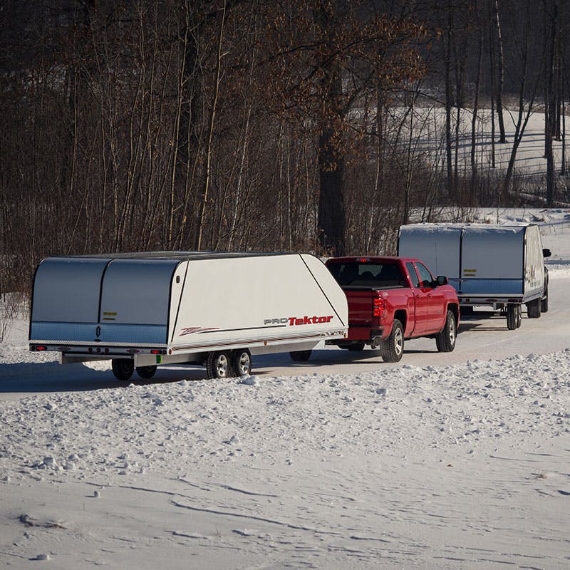 FLOE's gull-wing style Pro-Tektor™ enclosures combine exceptional aerodynamic design and phenomenal protection making a great looking, easy-to-use trailer. They feature a front and rear door to provide easy and safe loading/unloading. The 54" interior height accommodates a large variety of equipment. Pro-Tektors™ are available in 12', 16', 22' and 28' lengths.
