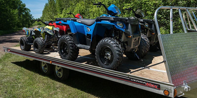 Versa-Max™ Ramp Trailers can take whatever you dish out. These 102" wide trailers have user-friendly features to simplify your hauling. Comes standard with a 52" extruded aluminum ramp that stows neatly under the trailer with a Slide-N-Glide™ system. They come in 10', 12', 16', 22' and 28' lengths.